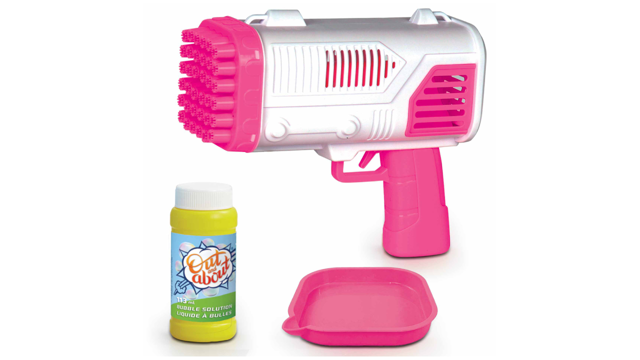 Designul cool, roz aprins al Out and About Xtreme Bubble Blaster include o prindere groasă, perfectă pentru mâinile mici pentru a crea o aventură cu bule și 36 de găuri pentru a crea sute de bule.