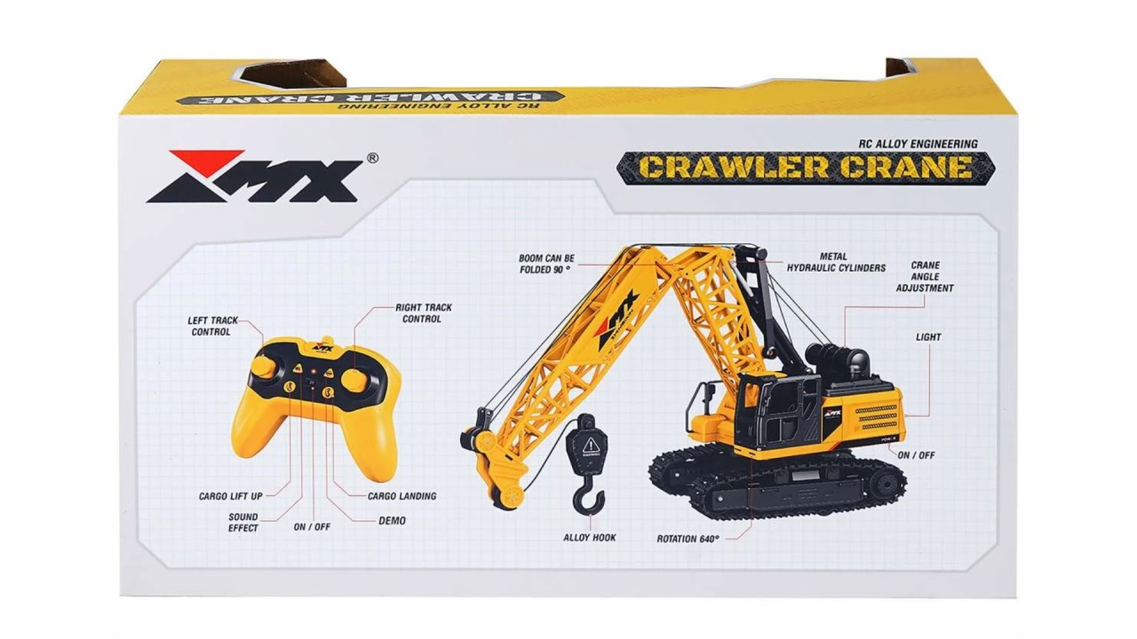 Full control: The crane can move forward and backward and rotate left and right so you can browse in all directions. The crane is equipped with caterpillar legs, so it has a stable base.