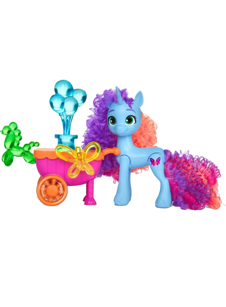 Copiii pot pune copitele lui Misty pe mânerul căruciorului cu baloane și le pot rostogoli în aventuri interesante.