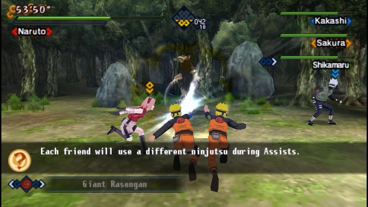 Testează-ți abilitățile în lupte intense împotriva marilor șefi, cum ar fi Shukaku și Kyubi.