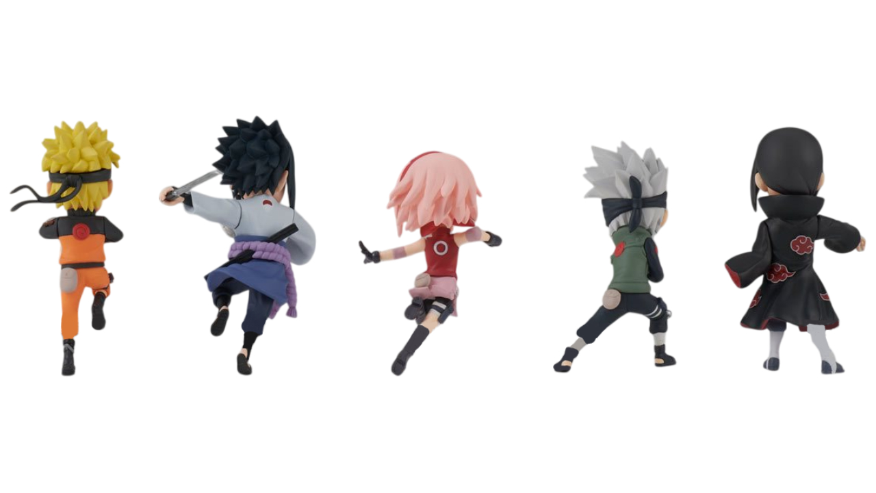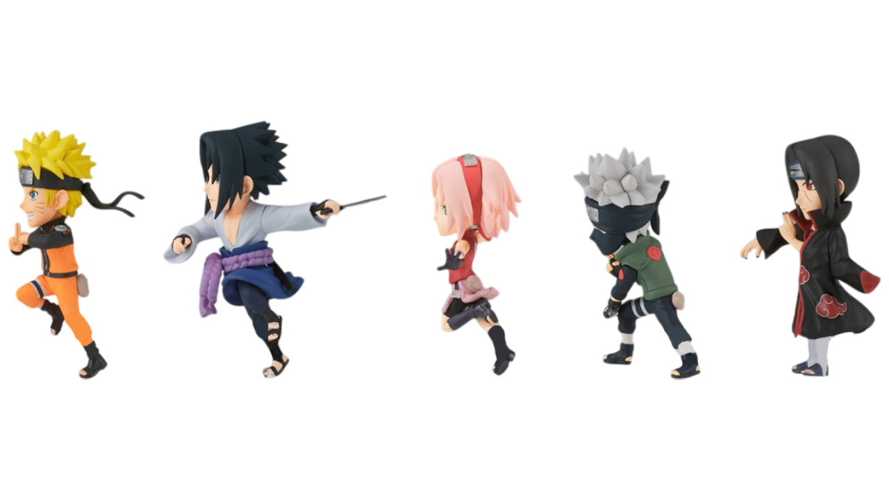 The assortment includes five different characters 5 different characters - Naruto Uzumaki, Sasuke Uchiha, Sakura Haruno, Kakashi Hatake and Itachi Uchiha.