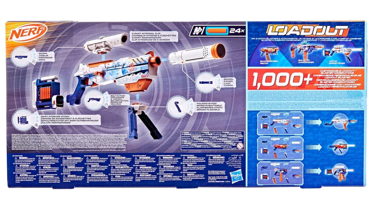 Nerf Loadout Arctic Zerostriker offers personalizable gun action for epic battles.
