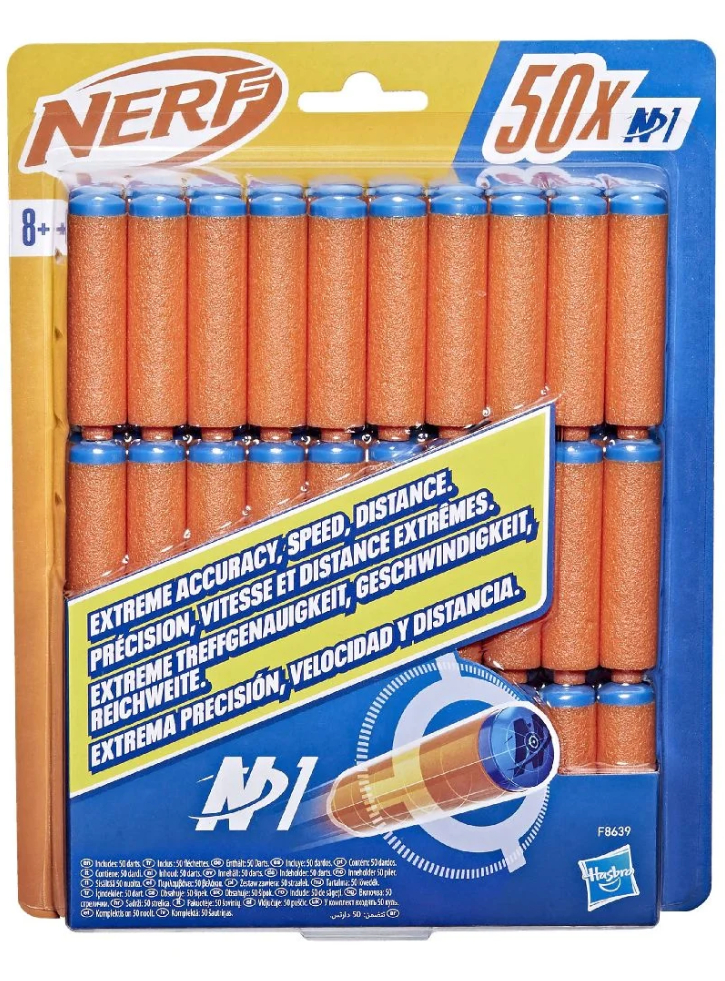 Acest pachet include 50 de săgeți Nerf N Series N1, compatibile numai cu blasterele Nerf N Series. Ochelari recomandați (nu sunt incluși).