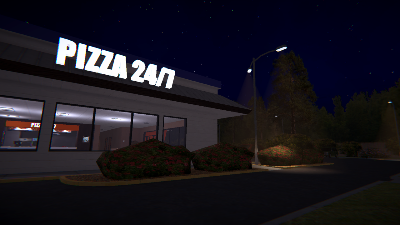 Congratulations on your new job! You’ve been selected for the Night Shift at the finest pizza establishment this side of the void. Your duties are simple: sweep up, hand out pizzas, rearrange the chairs, and keep an eye on—well, never mind that part.