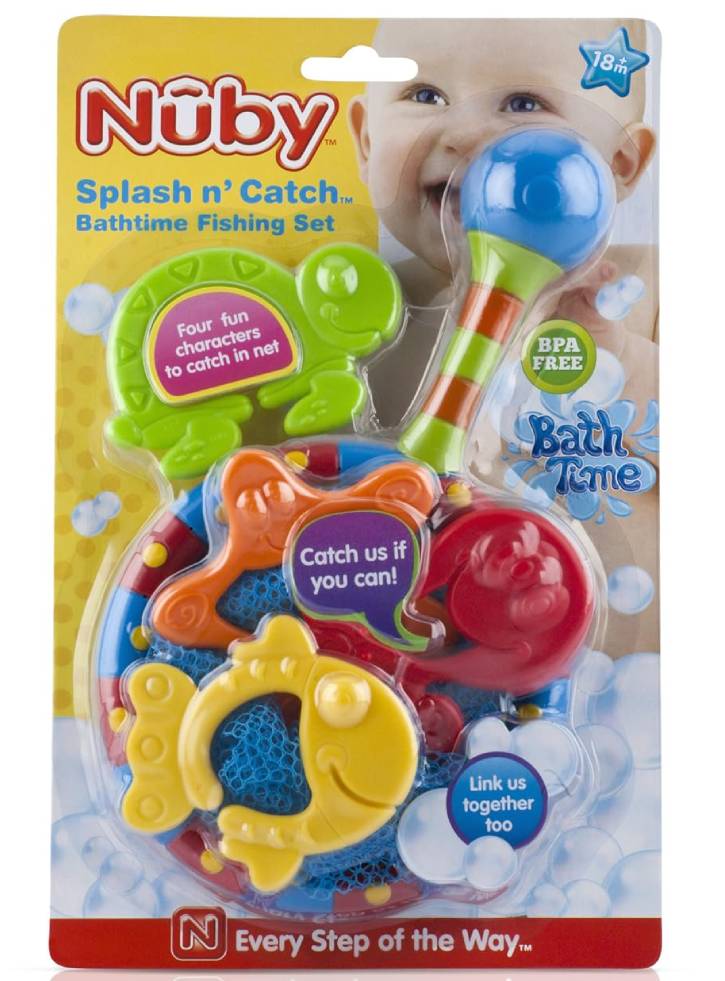 Setul de pescuit colorat de la Nûby™ provoacă micuțul tău să prindă cele patru jucării de baie incluse.