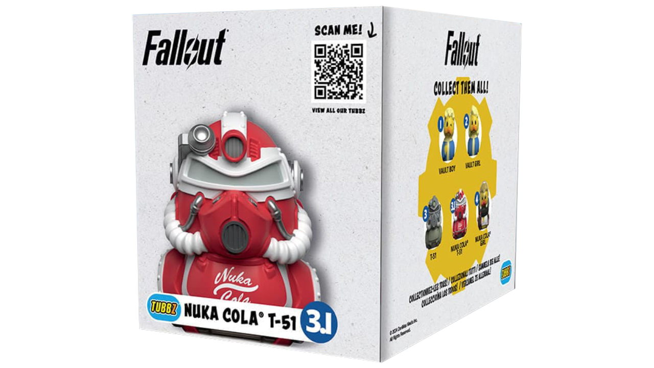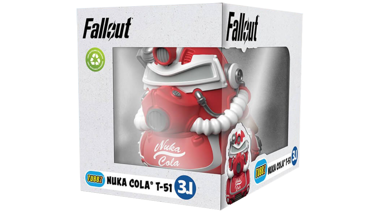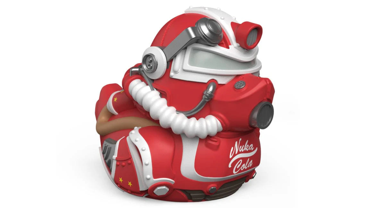 Look at that, what a costume! The Nuka Cola T-51 is equipped and ready to take on the challenges of post-apocalyptic deserts and duck ponds.
