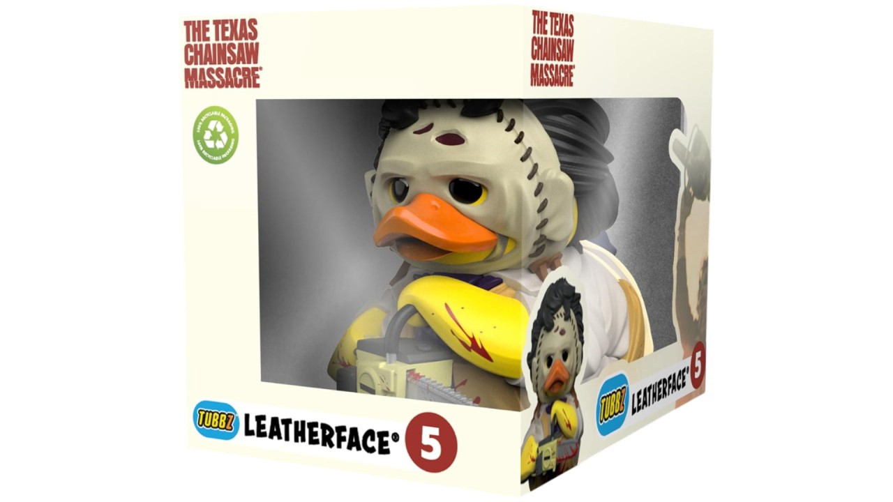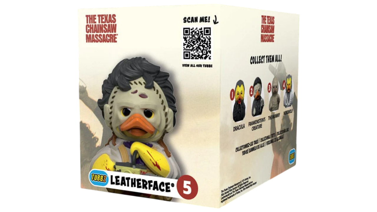 This version of Leatherface is a rubber duck with a terrifying twist, retaining his signature features such as the human skin mask and chainsaw.