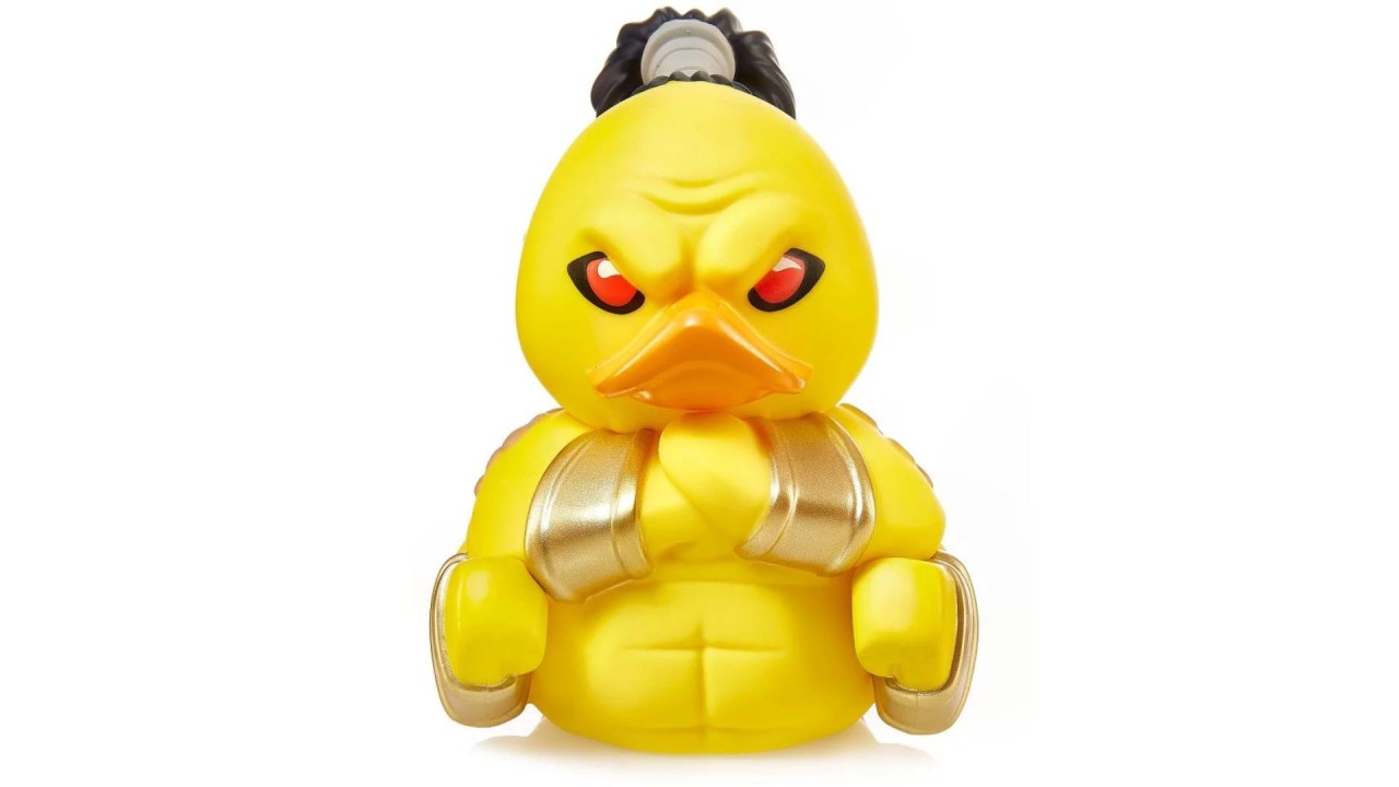 With his ponytail and red ensemble, Goro is not only half-man and half-dragon, but now half-duck!