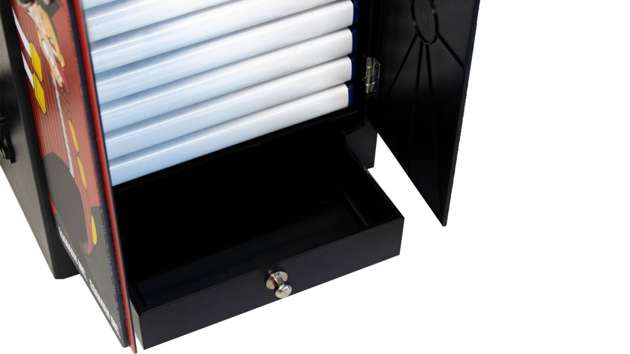 Featuring extra compartments for all your gaming essentials, store all your accessories, cables, remotes and other gear safely in the bottom drawer.