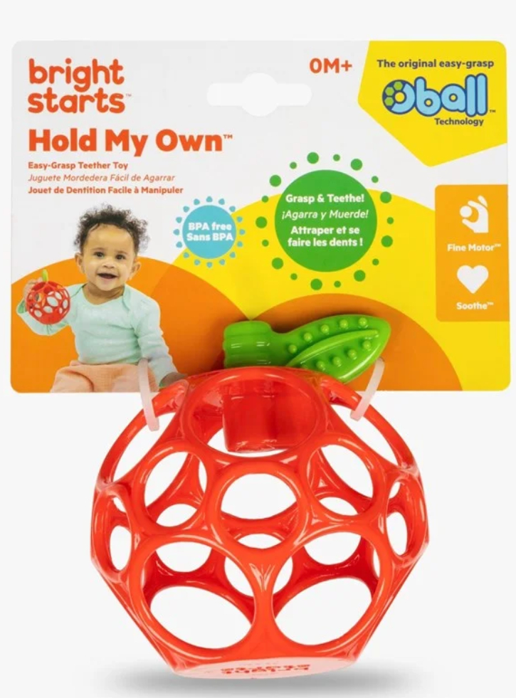 Made with Bright Starts' flexible and durable Oball technology, the red "fruit" has an easy-to-grab design with grip details and plenty of finger holes.