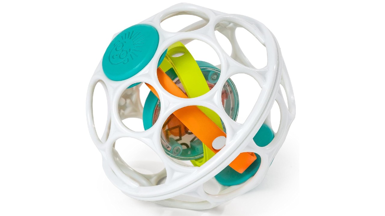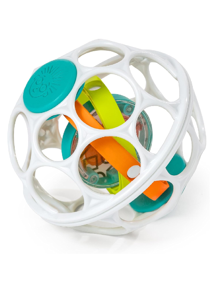 Babies and toddlers will love squeezing and grabbing the Oball's flexible frame or shaking and rolling the ball to hear the rattle sounds.
