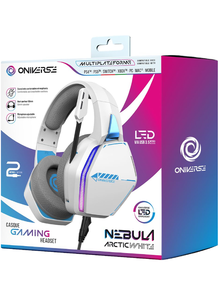 Cufundă-te în inima acțiunii cu căștile de gaming Oniverse Nebula LED.