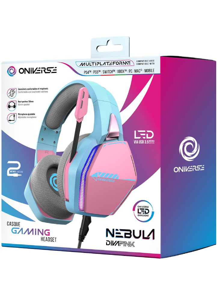 Cufundă-te în inima acțiunii cu căștile de gaming Oniverse Nebula LED.
