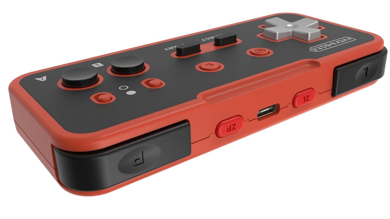 Un gamepad wireless 2.4GHz modern și versatil, cu un D-pad precis și două receptoare, proiectat în stilul unui pad clasic din era 8 biți.