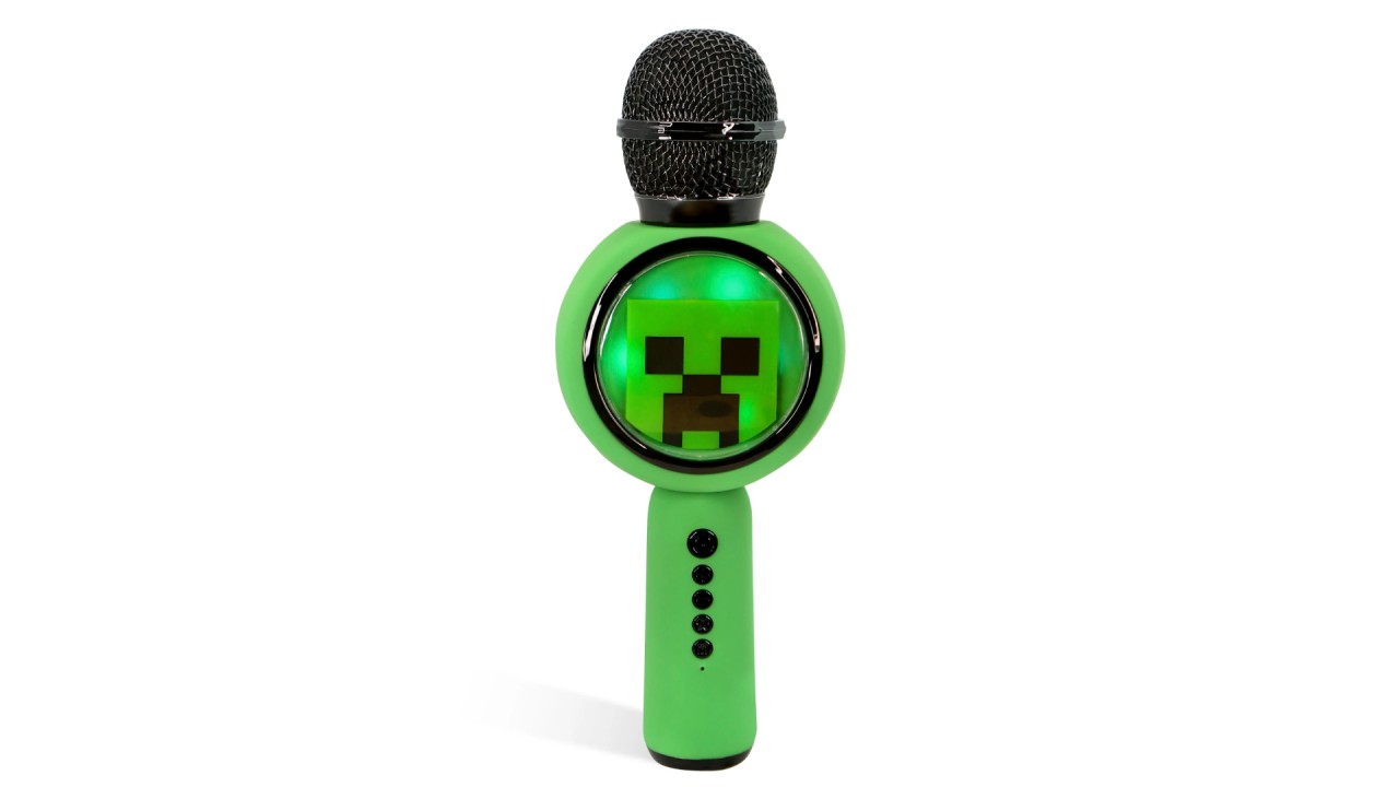 Cu un design Creeper distractiv și lumini LED, acest microfon de karaoke te va face vedeta petrecerii.