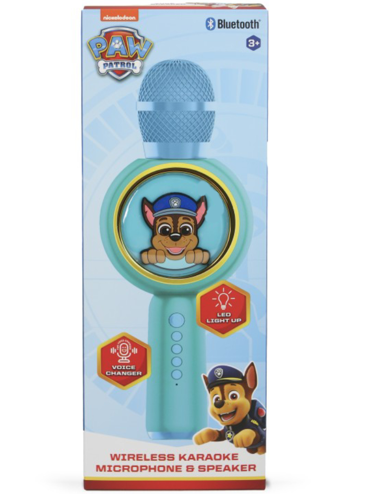 Fă din fiecare sesiune de karaoke o experiență canina cu microfonul de karaoke Chase LED de PAW Patrol..