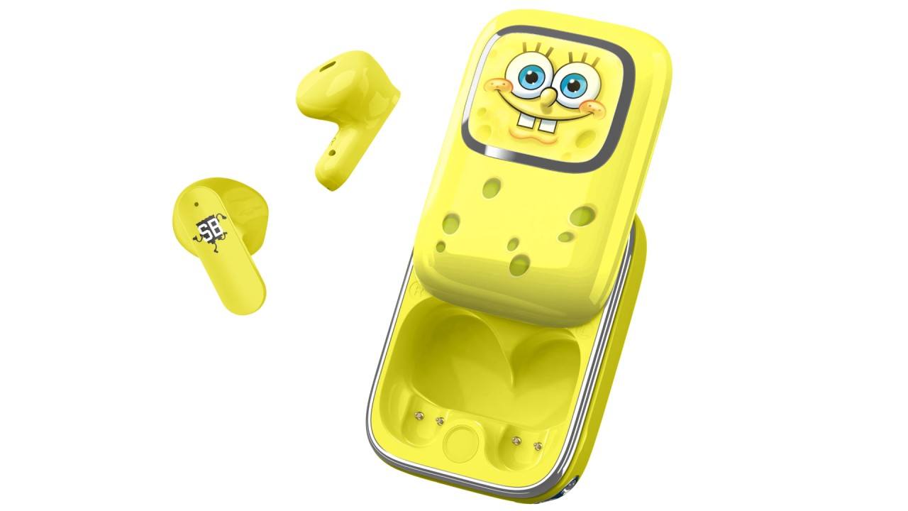 Listen to your favorite tunes with these SpongeBob SquarePants slide TWS headphones in yellow.