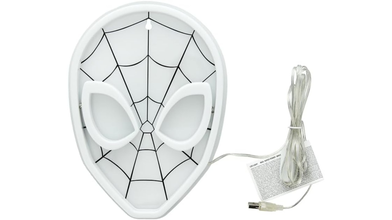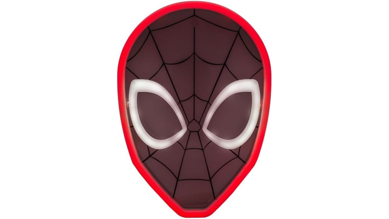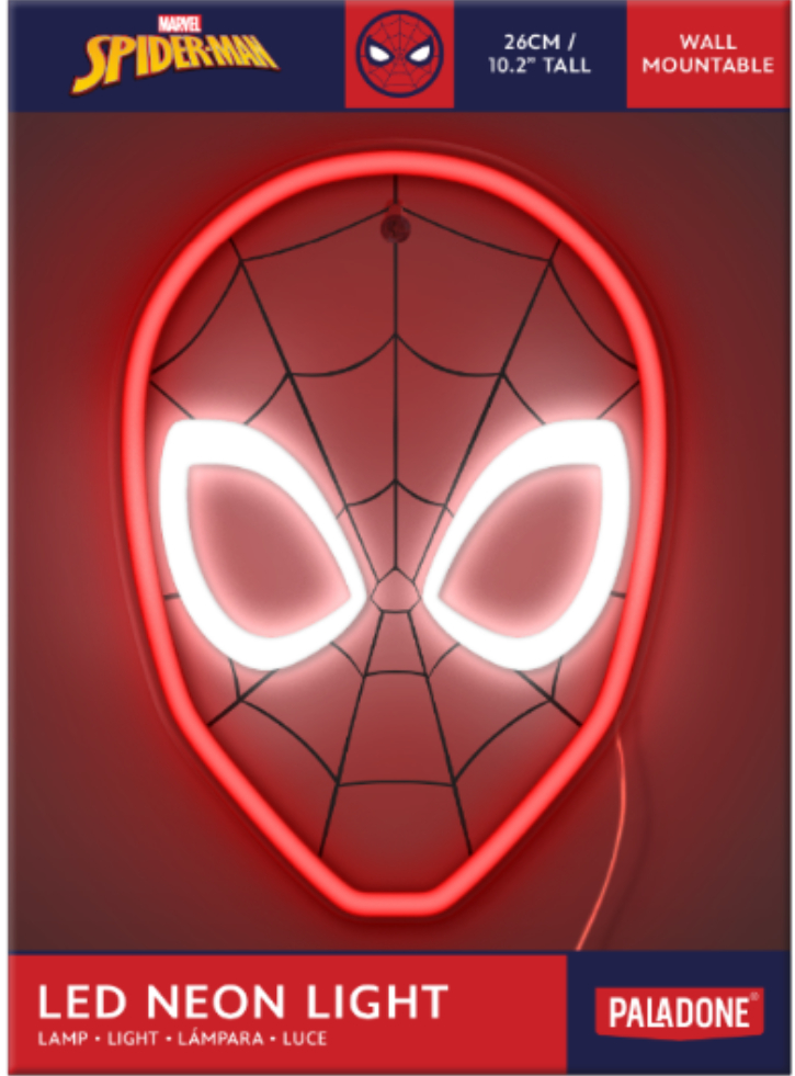 Designul iconic Spider-Man vă îmbunătățește decorul cu această lampă de veghe Spider-Man LED neon în formă de masca inconfundabilă a supereroului, perfectă pentru fanii Marvel.