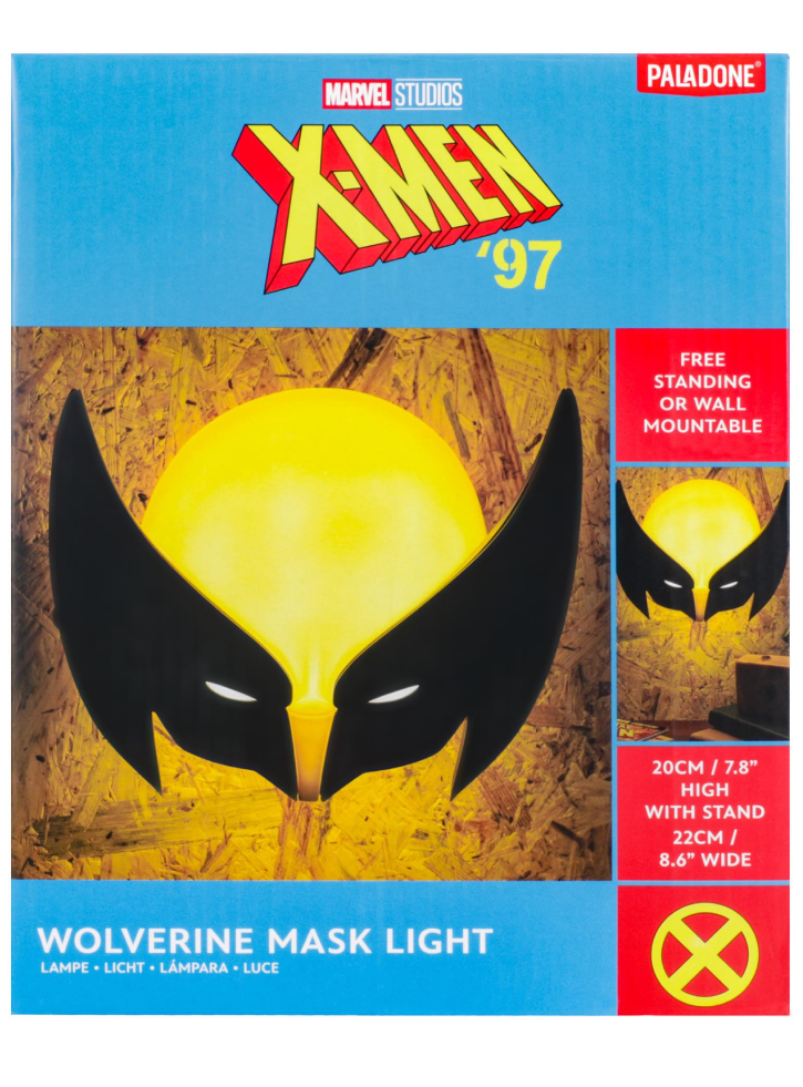 În formă de masca iconică galbenă și neagră a lui Wolverine, aprinde-o pentru a-ți lumina spațiul.