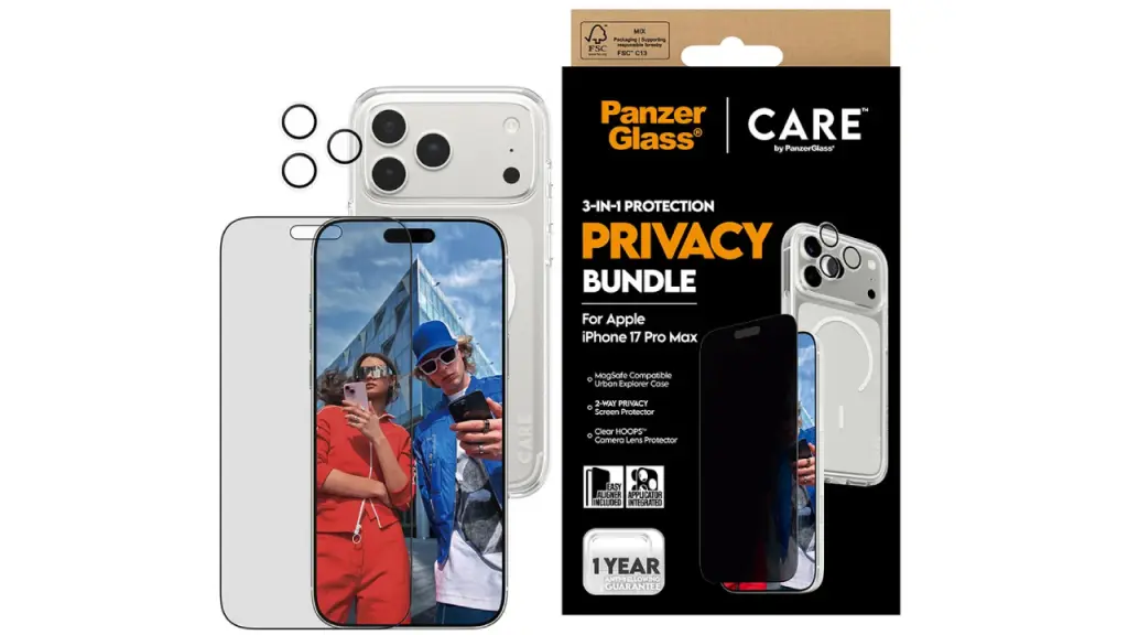 Protejați-vă telefonul și confidențialitatea cu pachetul PanzerGlass 3-în-1 pentru protecția confidențialității. Perfect pentru atunci când sunteți mereu în mișcare, acest pachet oferă protecție completă, asigurând în același timp confidențialitatea ecranului dvs.