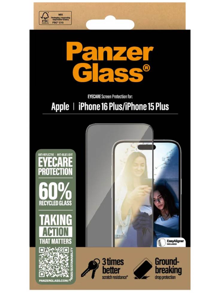 Anti-reflexie? Da! Rezistent la zgârieturi, șocuri și căderi? Da! Fabricat din 60% sticlă reciclată? Da! Această protecție pentru ecran de la PanzerGlass duce protecția ochilor și a telefonului la nivelul următor.