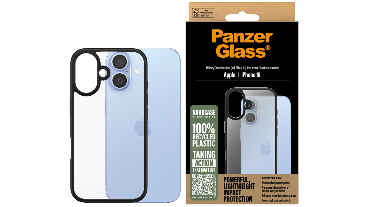 Husa de protectie PanzerGlass HardCase pentru iPhone 16, se potriveste perfect cu telefonul, oferind protectie si un aspect elegant acestuia.