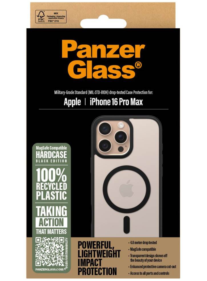 Protejați-vă iPhone 16 Pro Max cu stil și funcționalitate cu PanzerGlass HardCase MagSafe în negru.