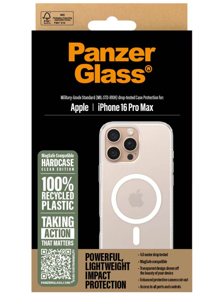 Panzerglass Hardcase Magsafe is designed to highlight the natural beauty of iPhone 16 with its thin and transparent design.