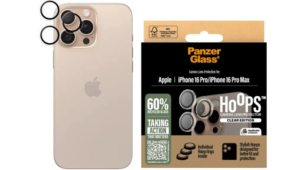 PanzerGlass Hoops Camera Lens Protector păstrează lentilele aparatului foto în siguranță împotriva căderilor accidentale pe podele dure, a loviturilor împotriva colțurilor ascuțite și a sărutului strident al cheilor din buzunar.