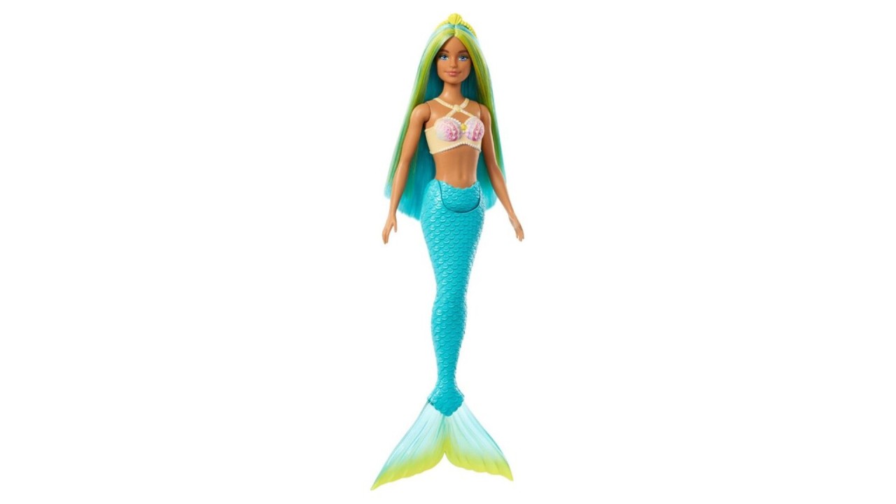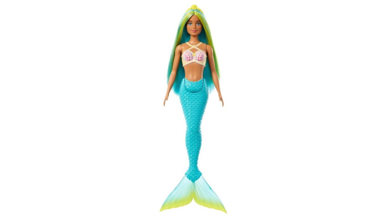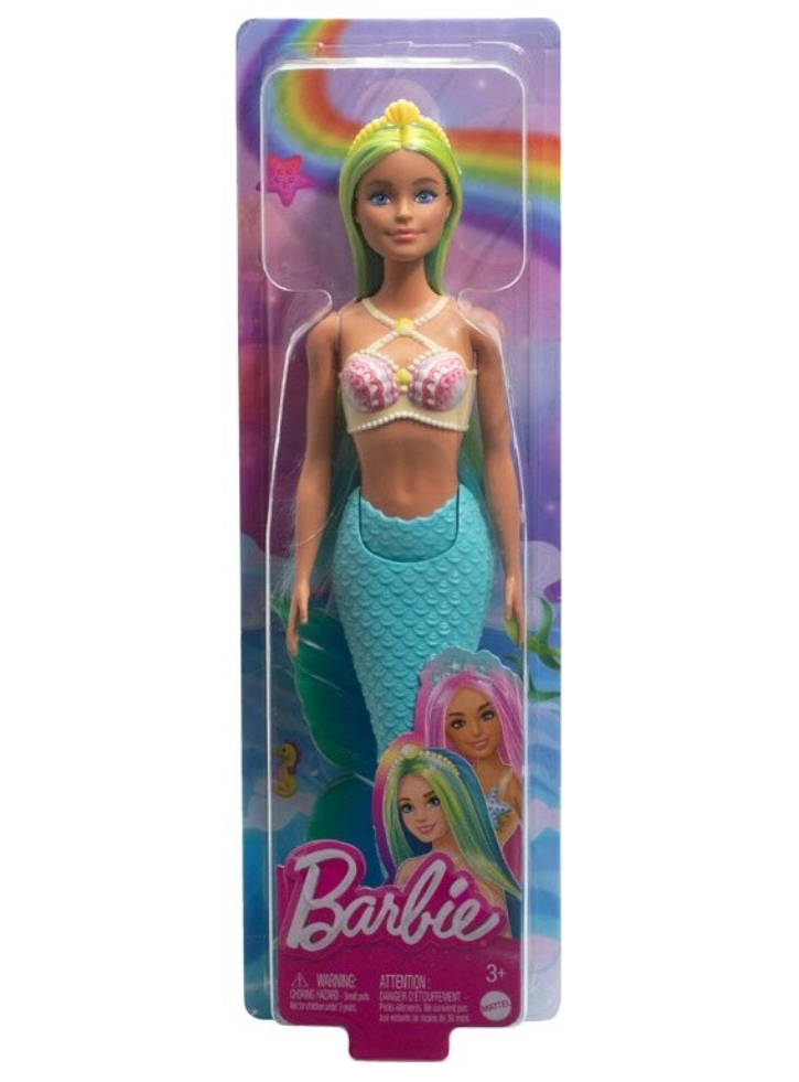 Explore a magical underwater world at play with this colorful collection of Barbie mermaid dolls! The mermaid doll features a uniquely designed scallop bodice as well as a tropical colored tail with ombre fins!
