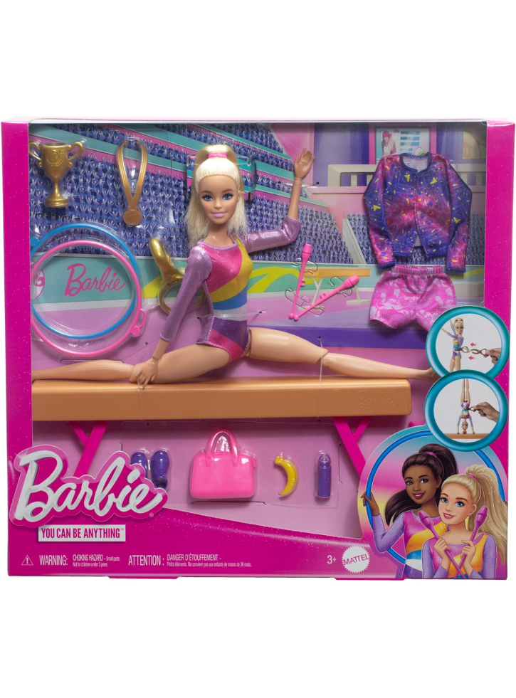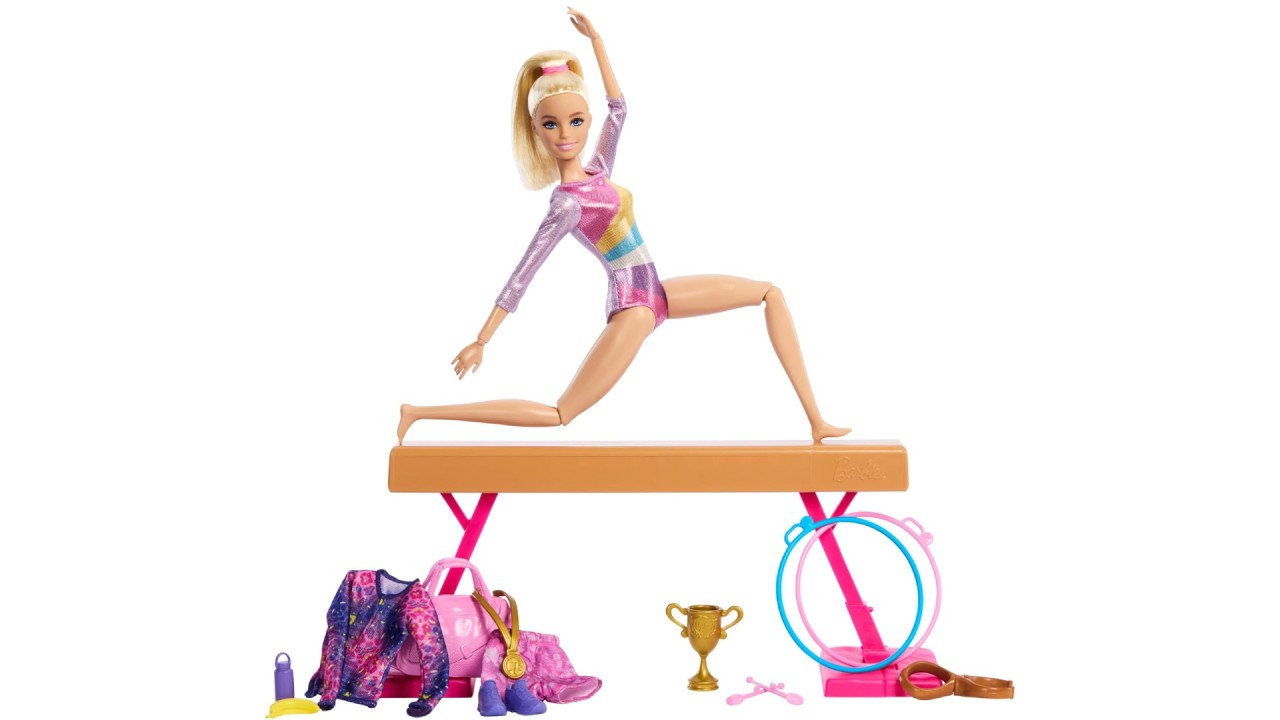 Kids will have fun imagining a career in gymnastics with Barbie doll and her balance beam.