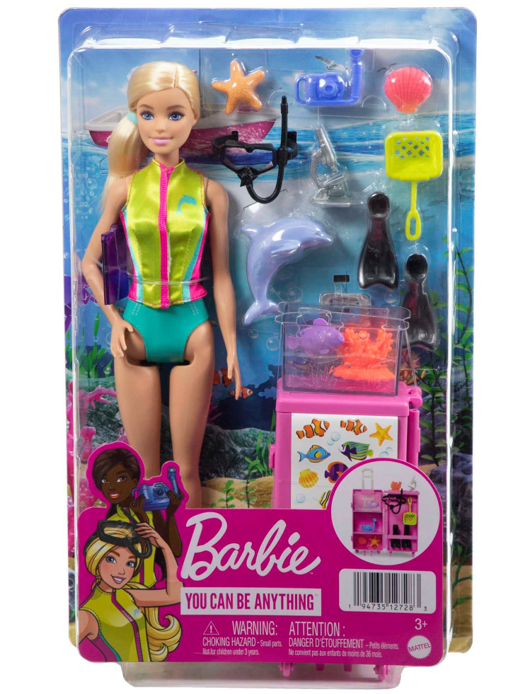 Cu echipament de snorkeling, viețuitoare marine și echipament de laborator, păpușa Barbie îi poartă pe copii într-o aventură subacvatică minunata!