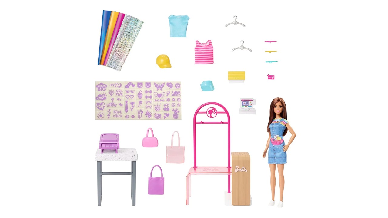 The Barbie Fashion Design Studio doll and playset lets kids open their own clothes boutique with three play modes: design, make and sell.