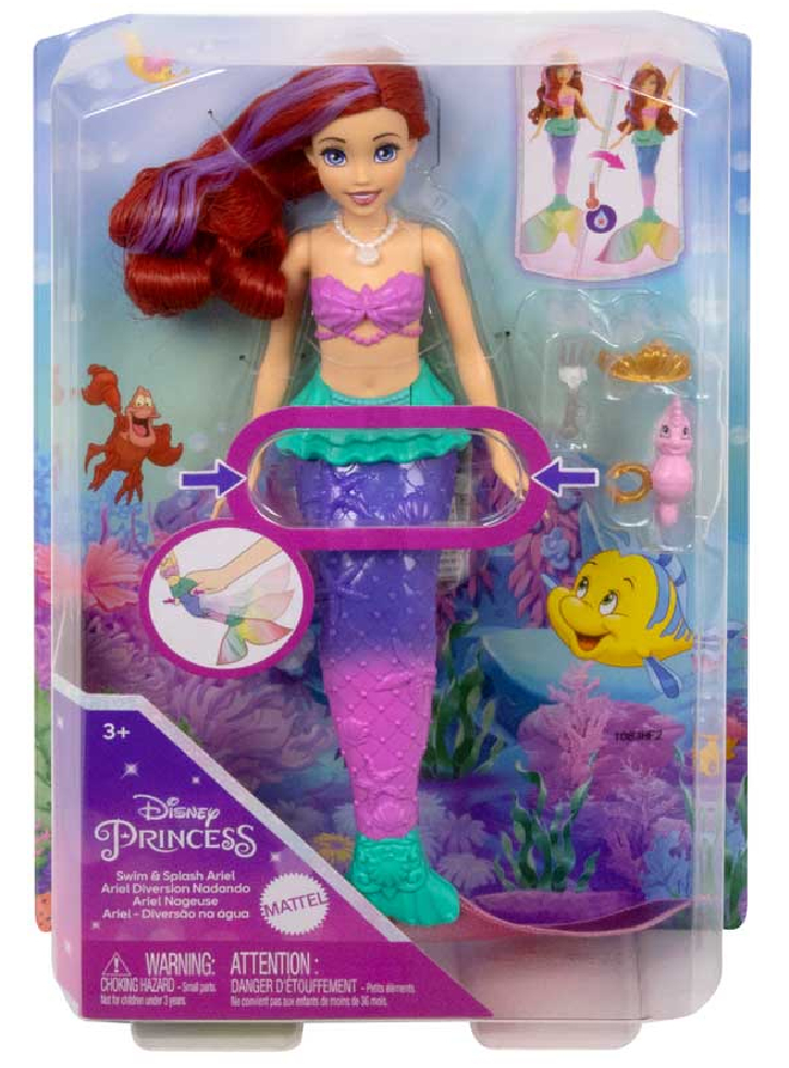 Inspirată de personajul de animație din filmul Disney, Mica Sirenă, această păpușă de înot Disney The Little Mermaid Ariel Color Change Swimming Doll face senzație prin acțiunea de înot și prin distracția schimbării culorii!