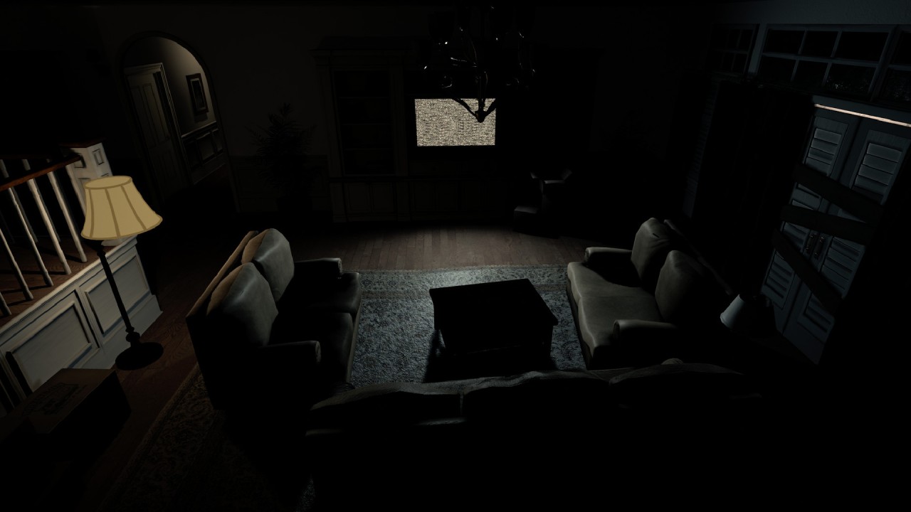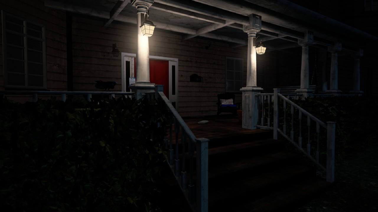 Înarmat cu o lanternă fără baterii, te trezești explorând ceea ce pare a fi o casă liniștită cu aspect obișnuit într-un cartier împădurit.