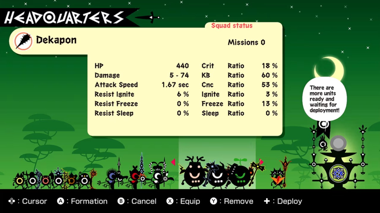 - Patapons pot fi creați sau îmbunătățiți folosind diverse obiecte. În plus, Patapons și mai puternici pot fi creați prin colectarea de materiale din etape și minigames