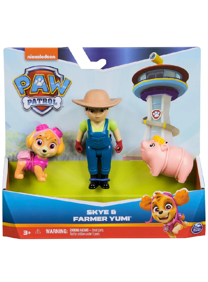 Setul conține două figurine: Farmer Yumi, cunoscută pentru rolul ei de fermieră prietenoasă și pricepută, și Skye, cățelușa aviație din Paw Patrol, recunoscută pentru curajul și abilitățile sale de zbor.