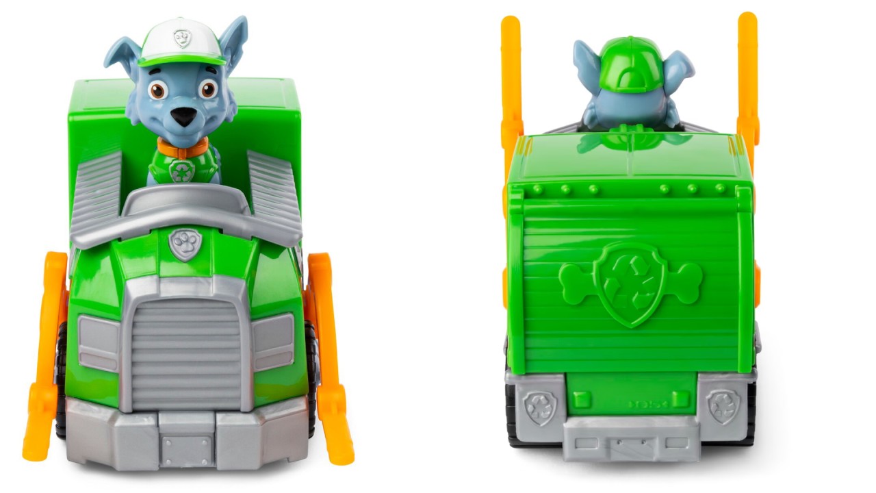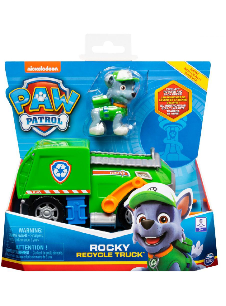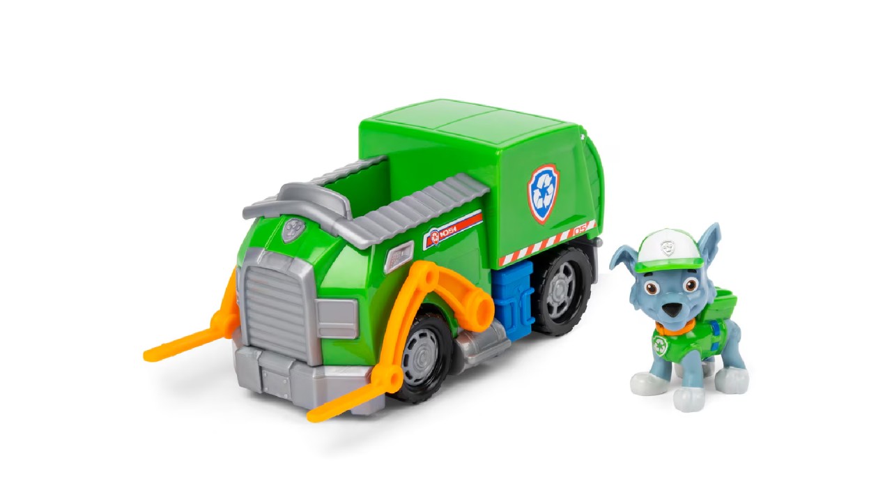 It's Rocky to the rescue in his Paw Patrol recycling truck with real wheels.