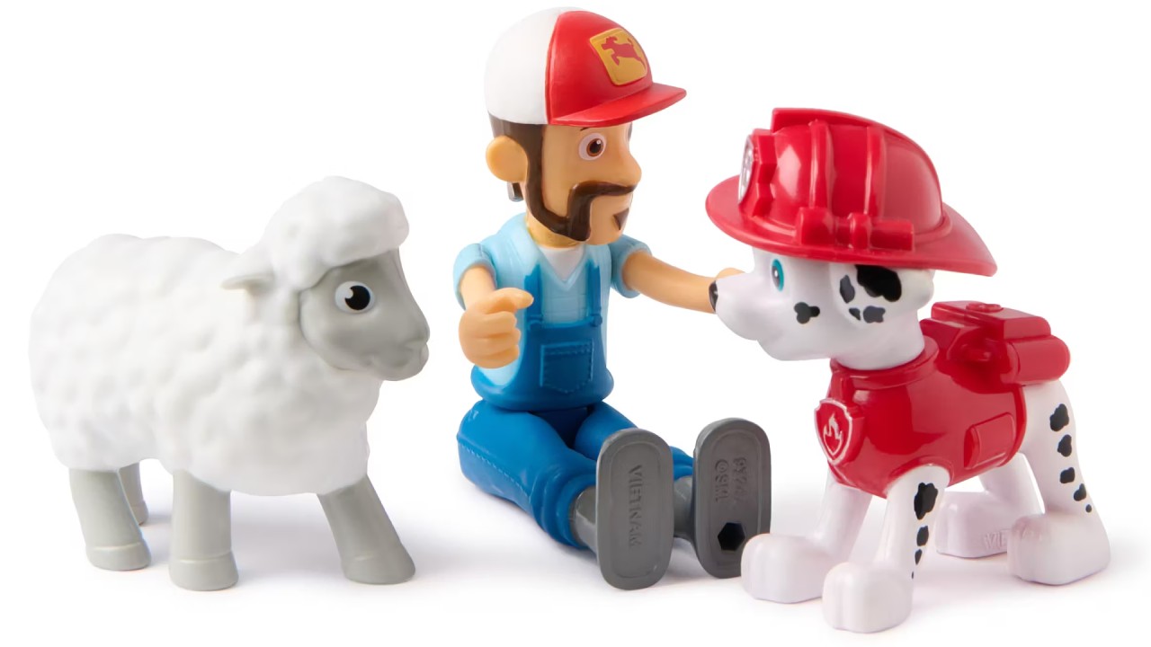 Alătură-te Patrulei Catelusilor în misiuni la fermă cu pachetul de figurine Marshall și Fermierul Al!