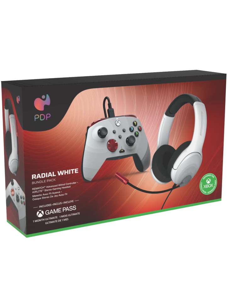 PDP Rematch & Airlite Radial White Bundle Licensed Xbox (XBOX SERIES X) este un pachet complet de accesorii licențiate pentru consola Xbox Series X, care include două controlere premium: PDP Rematch Wired Controller și PDP Airlite Pro Wireless Headset.