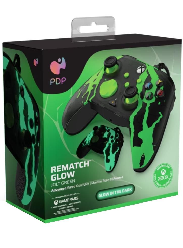 Luminează-ți jocurile cu controlerul cu fir Jolt Green REMATCH GLOW Advanced Wired.