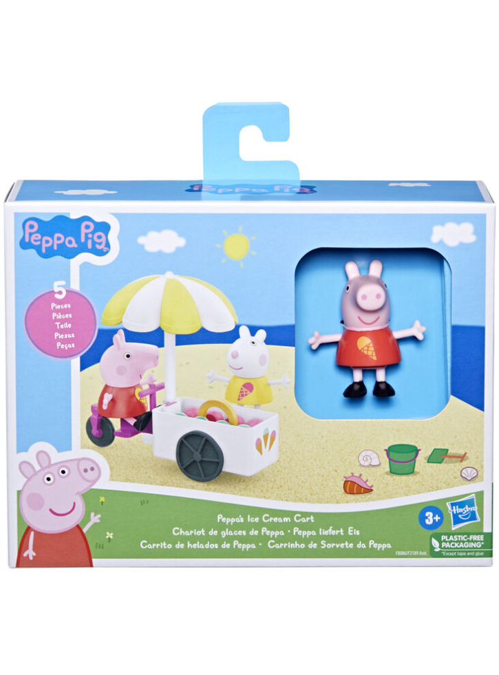Acest set de 5 piese Peppa Pig vine cu 2 personaje preferate ale lui Peppa Pig, Suzy Sheep și Peppa însăși, purtând ținute pe tema înghețatei.