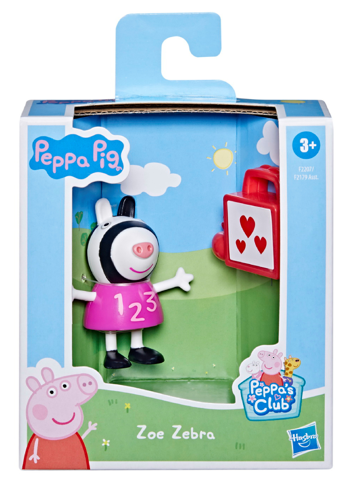 Figurina Peppa Pig Fun Friends Zoe Zebra o înfățișează pe una dintre bunele prietene ale lui Peppa purtând o rochie drăguță pentru școală și un accesoriu pentru cutia de prânz.