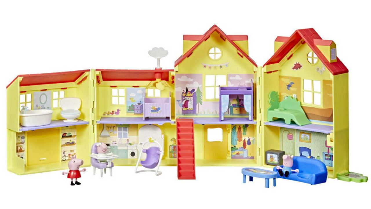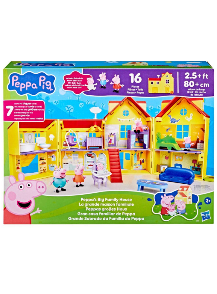 Cu setul de joacă Peppa's Big Family House, copiii pot recrea scenele preferate din serial și își pot imagina noi aventuri cu Peppa, George și bebelușa Evie.