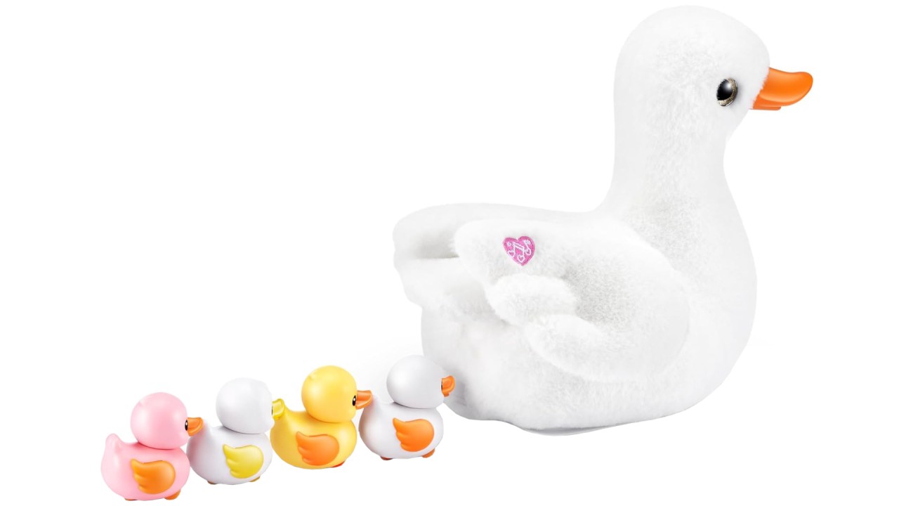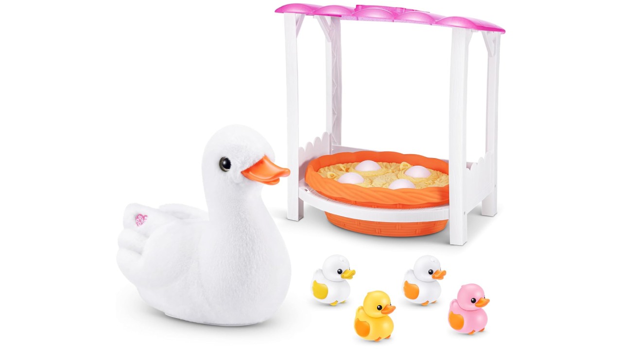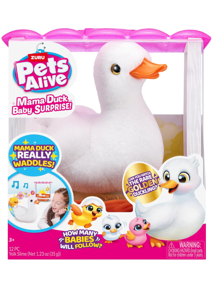 Setul include un pluș interactiv mama rață, 4x ouă surpriză cu 2 rățuște garantate și 2 surprize suplimentare.