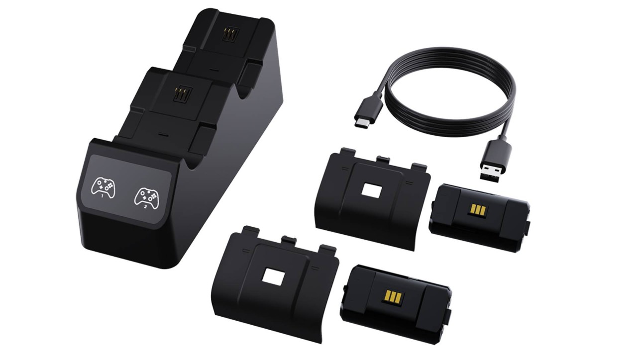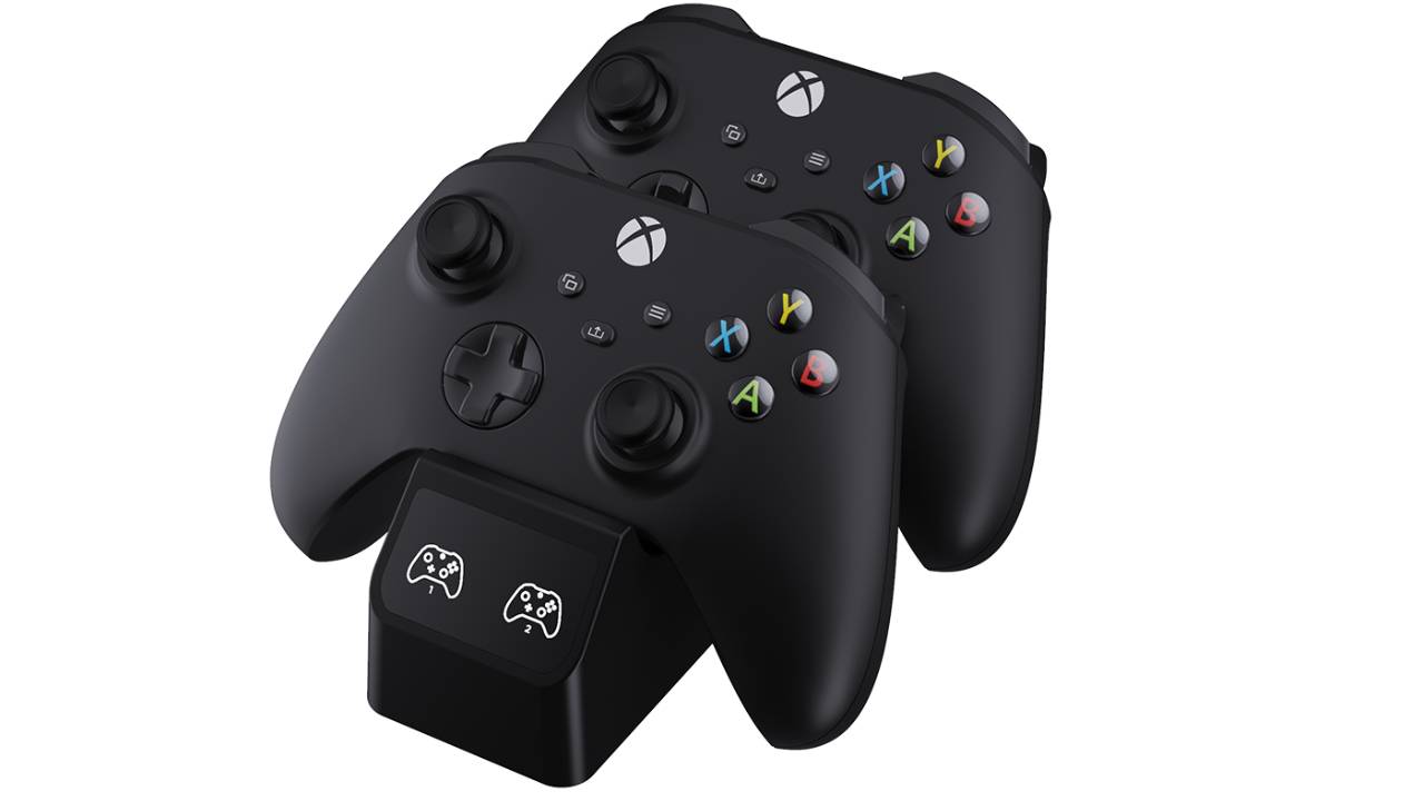 Stochează și încarcă simultan două controlere oficiale Xbox seria X cu încărcătorul pentru două controlere.
