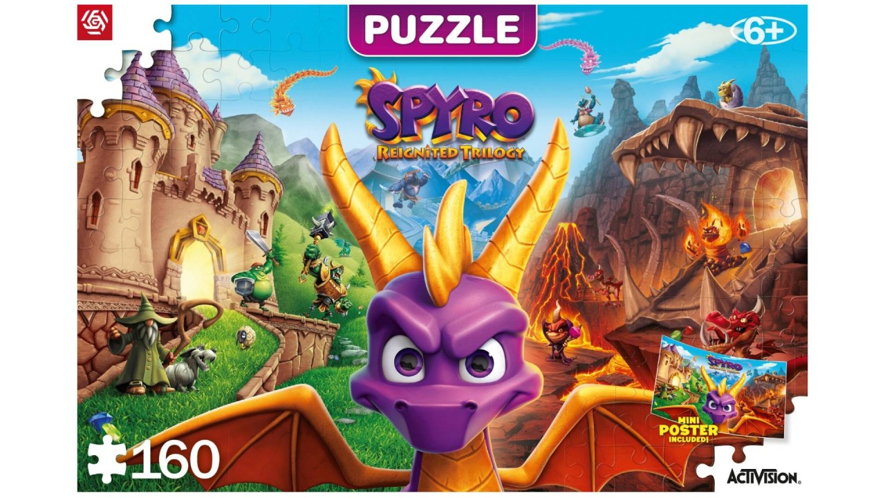 Un puzzle de înaltă calitate de la Good Loot cu tematică după celebrul joc video Spyro: Reignited Trilogy, cu celebrul dragon mov.