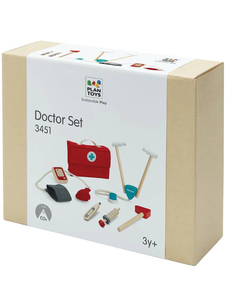 Fabricat din lemn reciclat și vopsele non-toxice pe bază de apă, prietenos cu mediul și pielea copiilor. Ajută copiii să-și dezvolte creativitatea, empatia și comunicarea, jucându-se de-a doctorul.