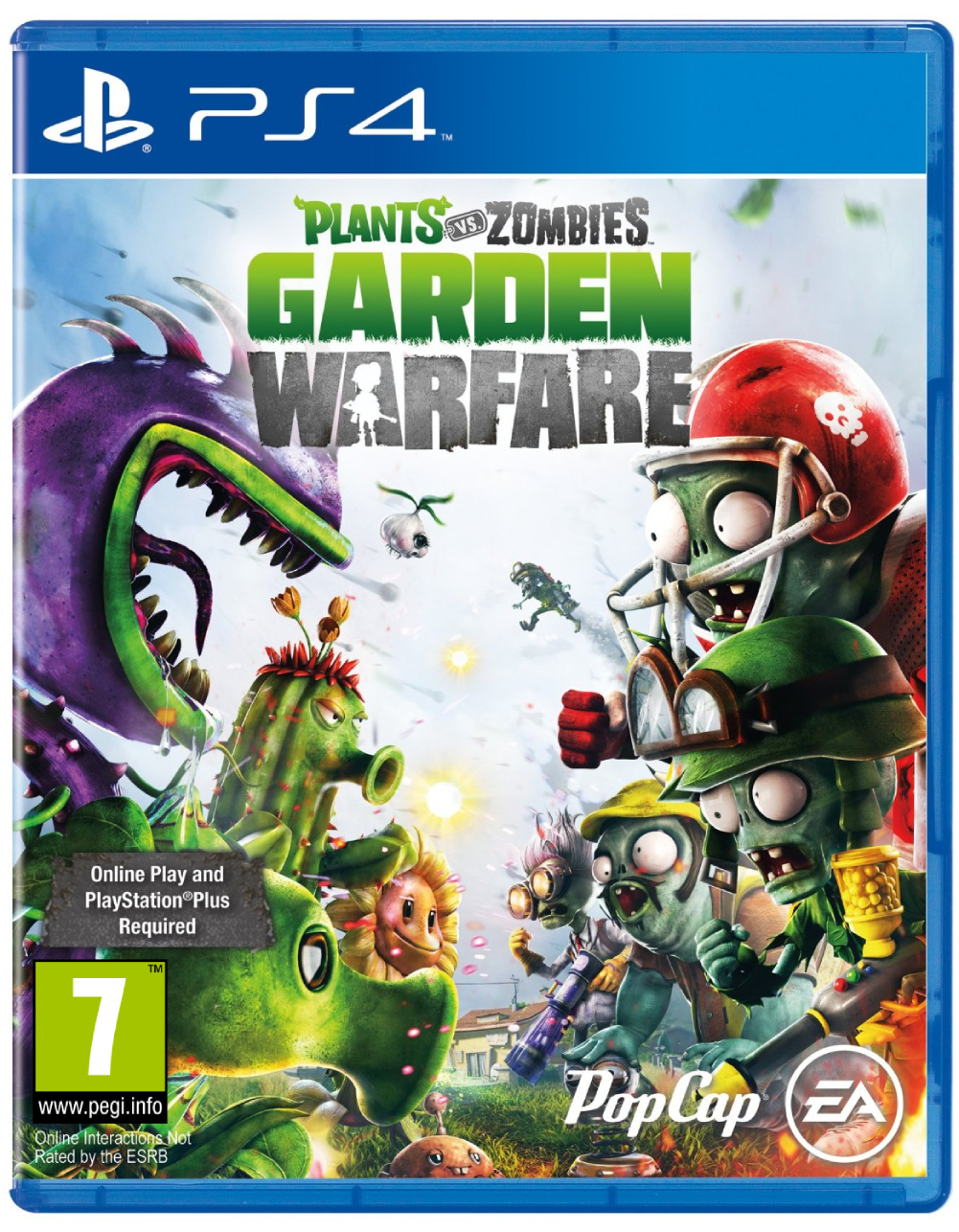 Abonamentul PS Plus este necesar pentru a juca online (abonament vândut separat). Plante vs. Zombies: Garden Warfare este un joc de tip shooter la persoana a treia care se bazează pe Plants vs. Zombies.