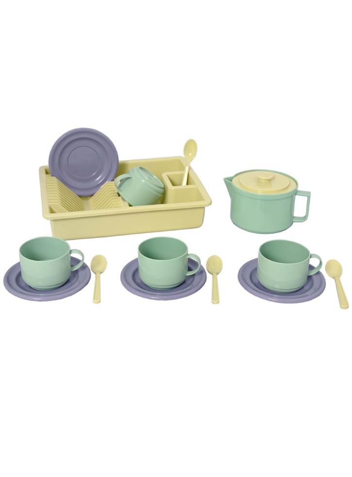 Vesela este fabricată din bioplastic obținut din trestie de zahăr. Vesela de joacă se poate spăla în mașina de spălat vase.